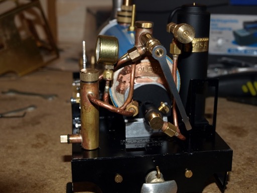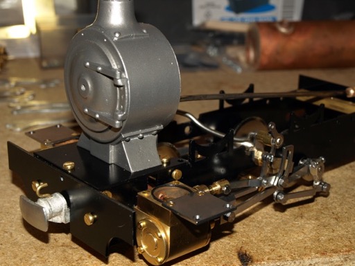 The second kit (HBK3) contains all the parts for the boiler, safety valve, pressure gauge, gas tank, tank for cylinder lubrication and all pipes. Be carefull when bending the pipework. I just used some round nose pliers, which worked well for me. After finishing all this it was time for some trial runs. I filled water, lubrication oil and gas. Oiled all running parts very well and ignited the burner, all as described in the manual. Surprise, surprise when the pressure reached 40 psi I opened the steam regulator and.. it was running. I had the loco running for about 5 hours forward and 5 hours backwards. It was only running on wooden blocks so there was no resistance but all the running parts are «settling in». I did not use «air» because I did not have any correct couplings. I am also a little unsure about the lubrication when using air in stead of steam.