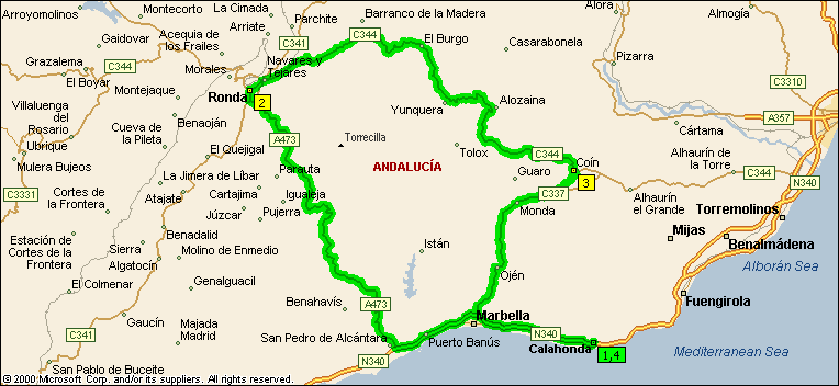 Turen gikk langs kysten til Marbella og så vai A473 til